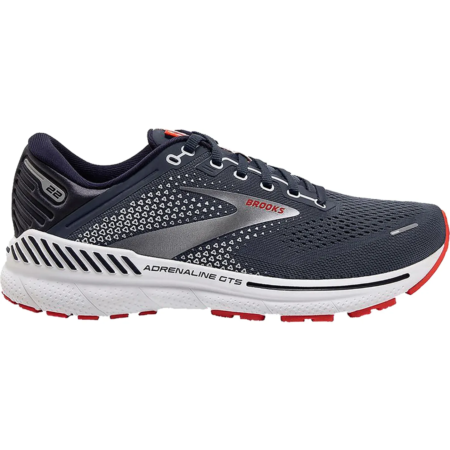 These Brooks Adrenaline GTS 22 Peacoat/India Ink/Grenadine Mesh Men's Shoes have the following features: